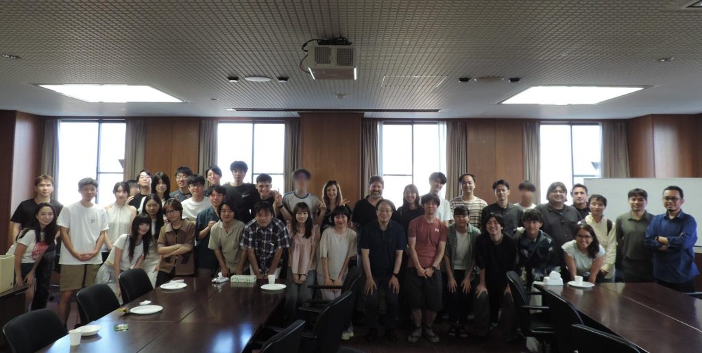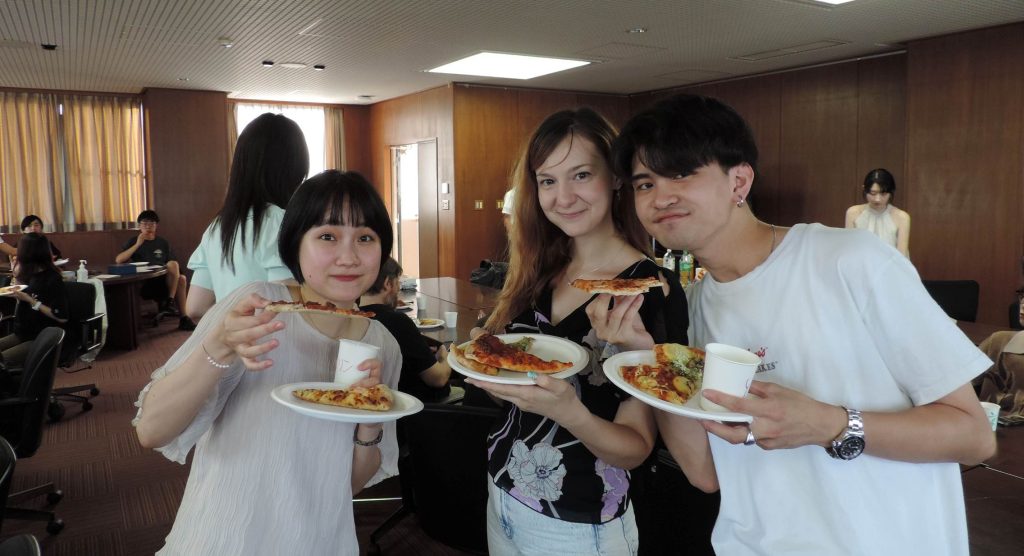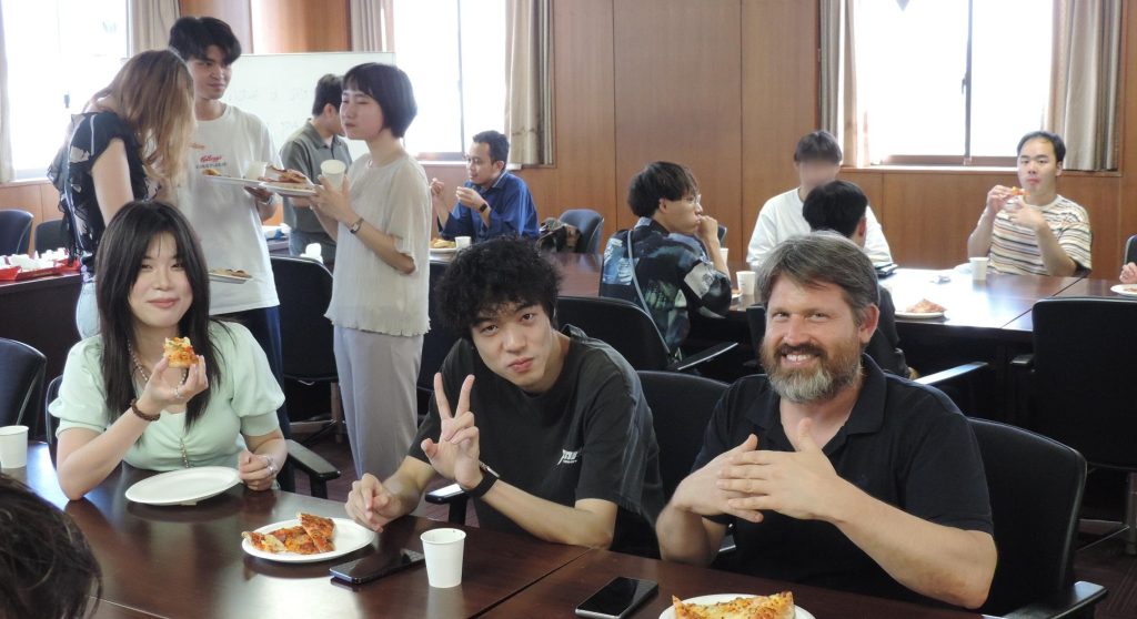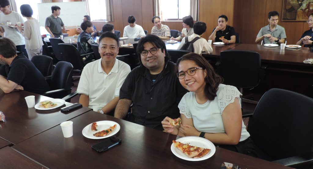 2025年8月1日、OSIPP棟6階会議室にて、国際交流委員会と院生会の共催でピザパーティーが開催された。当日は学生と教員合わせて45名が参加し、賑わいを見せた。会場には多国籍で、さまざまなバックグラウンドを持つ人が集まり、国際色豊かな雰囲気となった。