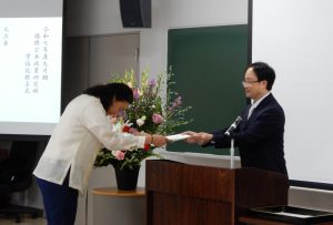 まずは、熊ノ郷 淳総長からのビデオメッセージが上映され、その後、大槻恒裕研究科長からOSIPP修了生に学位記が授与された。