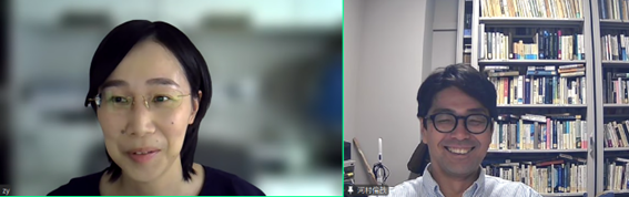 インタビューの際の周さん(写真左)と、周さんの指導教員である河村先生(写真右)