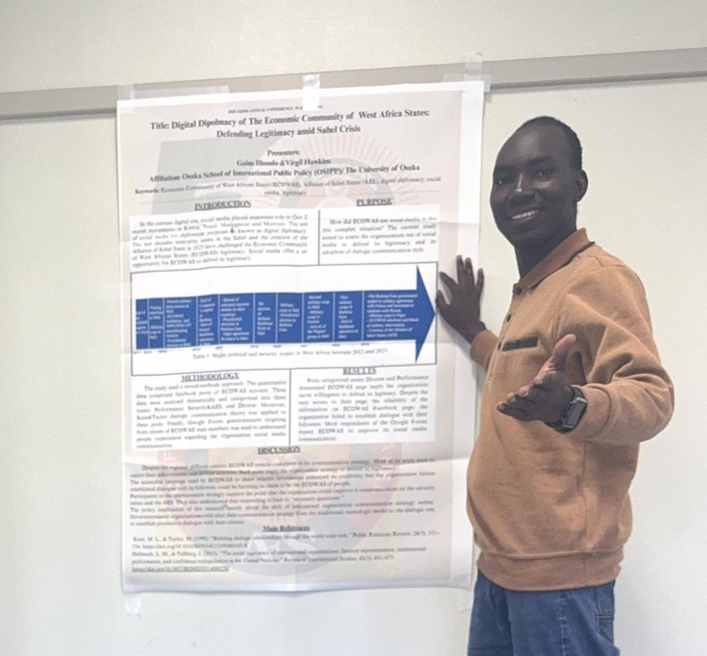 OSIPP博士後期課程1年次のGaius Ilboudoさんが、2025年11月8日に金沢大学で開催されたJapan Association of Human Security Studies (JAHSS)においてポスター報告を行いました。(写真:ポスター報告時のIlboudoさん)