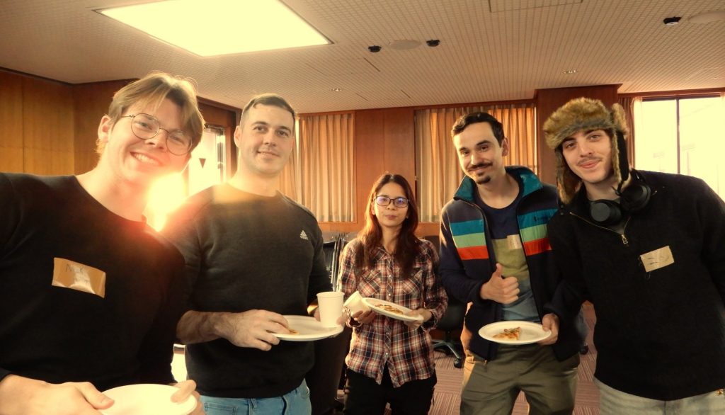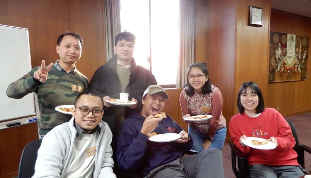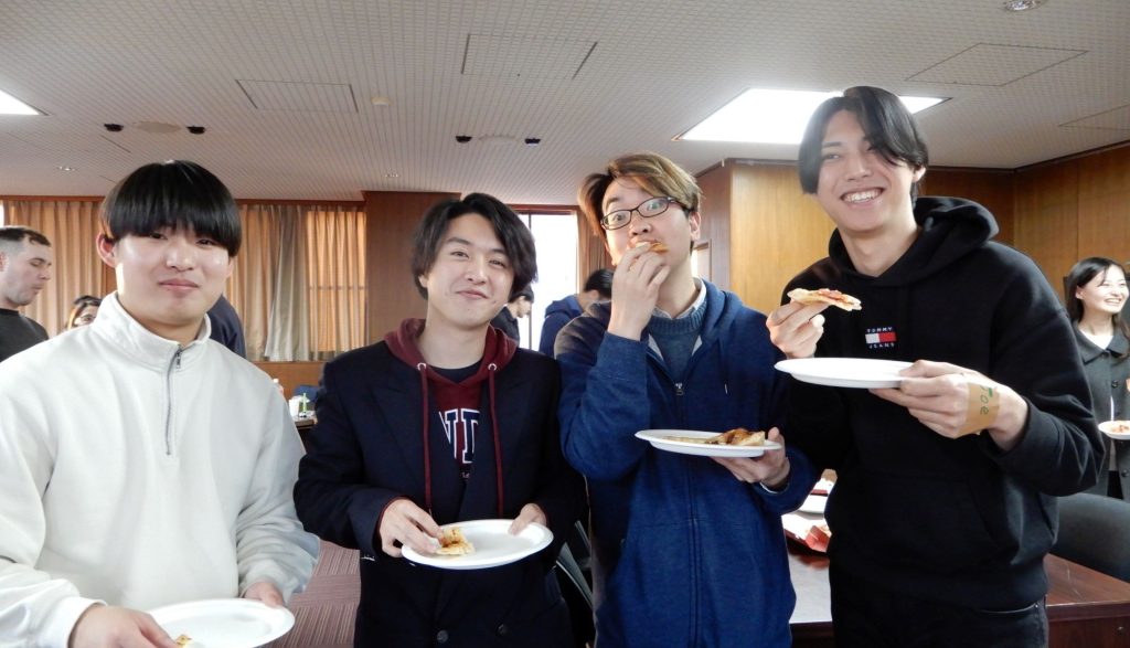 会場では皆がピザを囲みながら、和気藹々と食事や会話を楽しんだ。研究科内の親睦を深める貴重な機会となり、良い新年のスタートとなった。