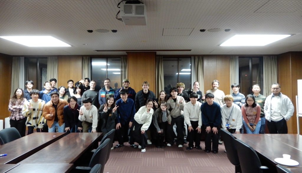 2026年1月13日、OSIPP棟6階会議室にて、国際交流委員会と院生会の共催でピザパーティーが開催された。当日は学生と教員合わせて40名ほどが参加し、賑わいを見せた。世界各国からの留学生も多く参加し、国際色豊かな雰囲気となった。